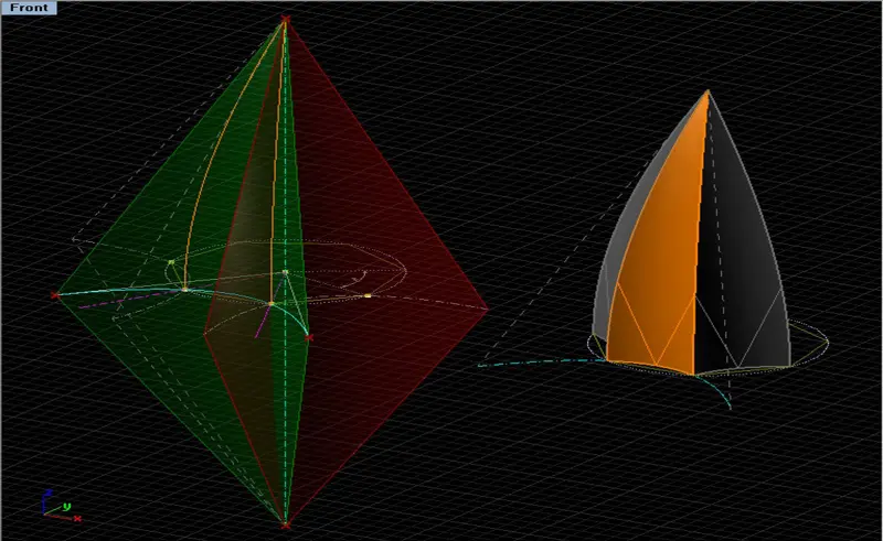 The first action was to determine the shape of the tower. No models or drawings of the Mary Tower survived, so a design had to be recreated from fragmentary archival evidence and by extrapolating from Gaudí’s use of geometry in his model for the sacristy. A series of hyperbolic paraboloids were rotated about a central axis and intersected. This was then modelled in Rhino 3D software and elongated to create a tower with a scalloped multi-sided shape in plan, with many small triangular windows, shaped as hyperboloids.