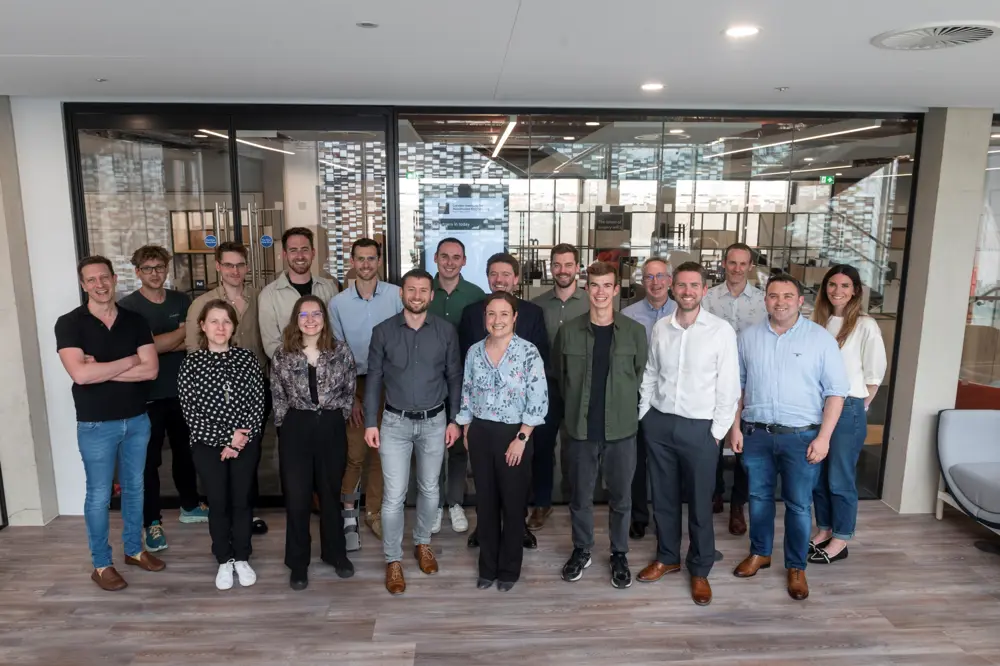 Michael Ebner (third from left, front row), CEO and Co-Founder, with the rest of the Hypervision Surgical team at the London Institute for Healthcare Engineering © Hypervision Surgical